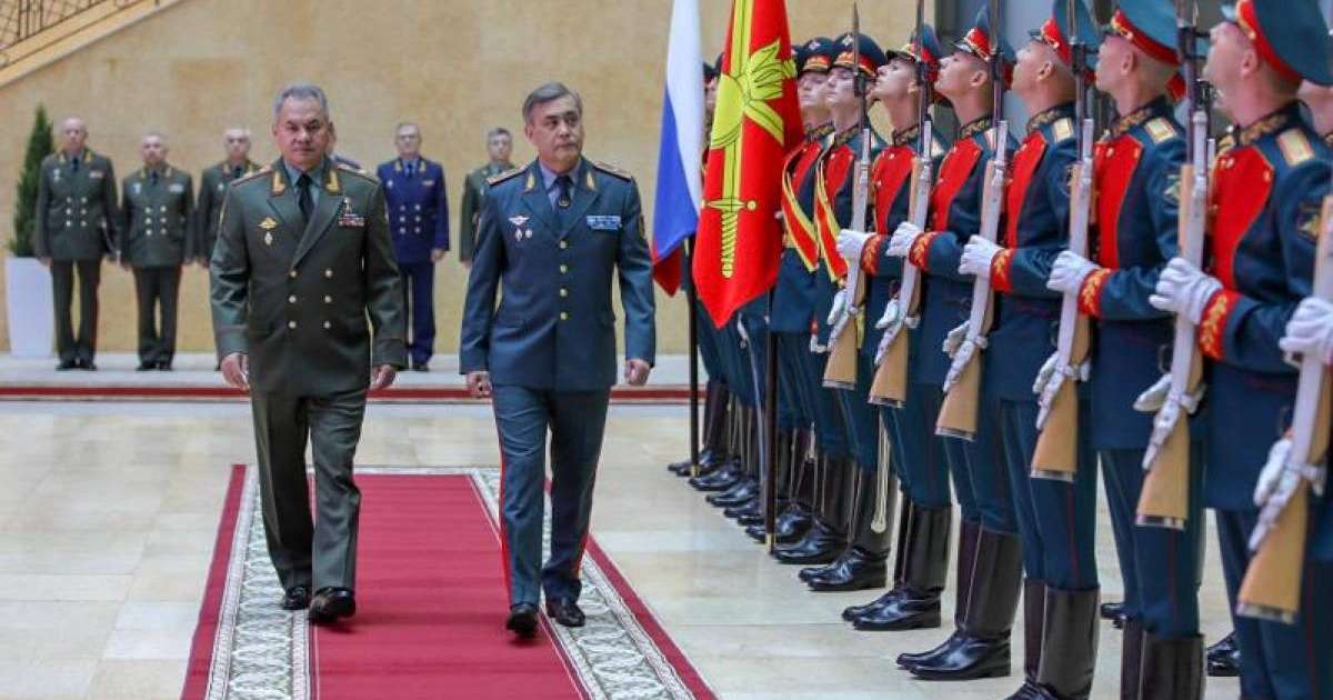 俄罗斯国防部长绍伊古在莫斯科为哈萨克斯坦国防部长举行了欢迎仪式,随后双方进行了会谈。