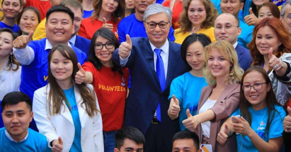 哈通社/库斯塔奈/5月22日-哈萨克斯坦总统哈斯穆卓玛尔特•托卡耶夫支持将2020年宣布为"志愿者年"的提议。