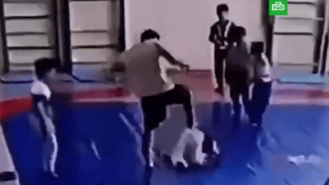 Жантүршігерлік жайт спорт мектебіндегі бейнебақылау камерасына түсіп қалған. Видеода жаттықтырушы баланы теуіп, шашынан тартып келе жатқанын көруге болады.