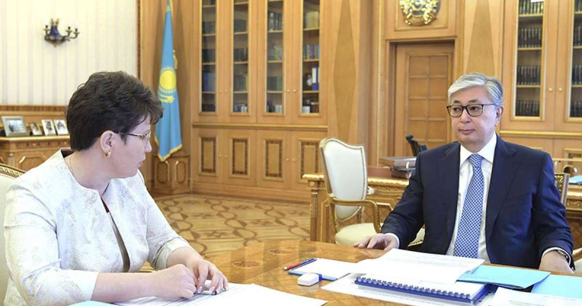 哈通社/努尔-苏丹/5月28日 -- 据总统府新闻局消息,哈萨克斯坦总统哈斯穆-卓玛尔特·托卡耶夫28日在总统府接见哈萨克斯坦预算执行情况审计监督委员会主席娜塔莉亚•格都诺娃。