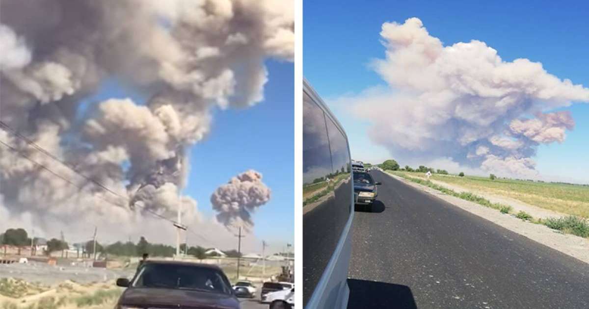 哈通社/阿尔斯/6月24日 -- 突厥斯坦州州长沃穆尔吾扎克•舒克耶夫24日中午在阿尔斯市弹药库爆炸事故现场向媒体表示,全市市民已开始紧急撤离。