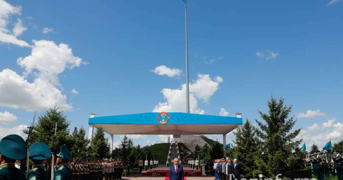 哈通社/努尔-苏丹/7月5日 -- 哈萨克斯坦总统哈斯穆-卓玛尔特·托卡耶夫5日出席了首都中央公园举行的升国旗仪式。