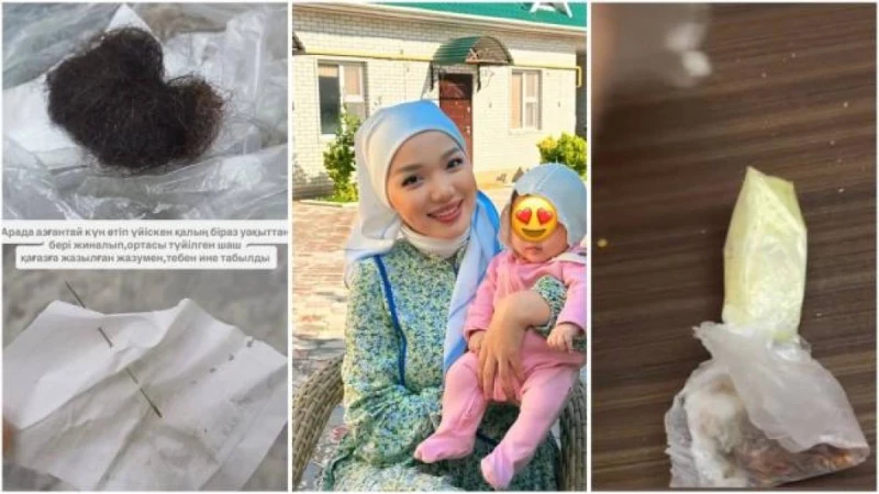 Ол мейрамханадан үйіскен қалың шаш тапқан, оның ішінен қағазға жазылған жазу мен тебен ине тапқан.