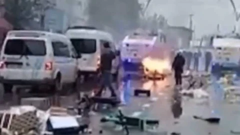 Нәтижесінде бір көлік өртеніп, полиция су атқыштар мен көзден жас ағызатын газды қолданды.