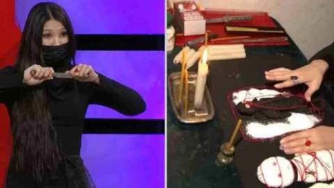 Мыстан әйел бағдарлама барысында қара сиқыр жасаған әйелді қалай жазалағанын көрсетті. Ол топырақ пен өлген адамның топырағын екі бөлек ыдысқа салып әкелген. Май шам. Ыдыс. Тігілген қуыршақтарын ала келді. Қуышақтың біріне өлі топырақты сеуіп, өз саусағындағы қанын қамызып, қуыршақтың маңдайына жақты. Аяқ-қолын байлап матап тастады. Ол адам енді адамдарға жамандық шақыра алмайды дегенді айтты.