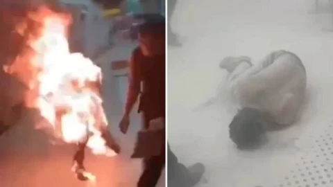 Әлеуметтік желіде тараған видеодан ер адамның әуежай кеңселерінің бірінде өзін өртеп жібергенін көруге болады. Оқиға орнындағы полицейлер өртті жедел сөндірген.