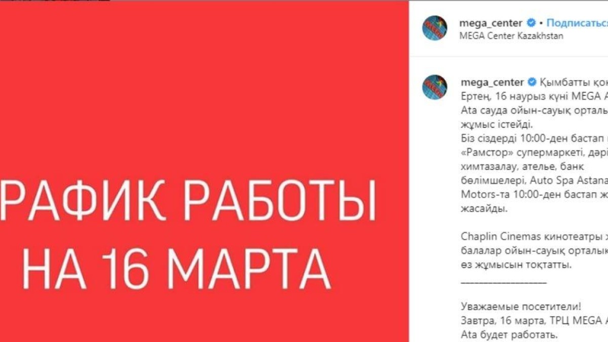 Алматы мен Нұр-Сұлтандағы ірі сауда орталықтары жұмыс режимін жариялады