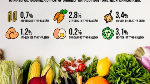 Оның айтуынша, бүгінде облыс бойынша бакалея өнімдері бағасының 0,7%-ға, картоп - 1,2%-ға, сәбіз - 2,8%-ға, жұмыртқа - 0,2%-ға, пияз - 3,4%-ға, ақ қырыққабат - 3,1%-ға төмендеуі байқалады. Өткен аптада қарақұмық жармасы бағасының 311 теңгеден 337 теңгеге дейін шамалы өсуі тіркелді.