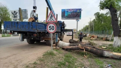 Алматы облысы Іле ауданы Өтеген батыр кенті мен Байсерке ауылының аралығында тас жол бойындағы жайқалып тұрған ағаштар жаппай кесіліп жатыр, деп хабарлайды KzNews.kz ақпарат агенттігі.