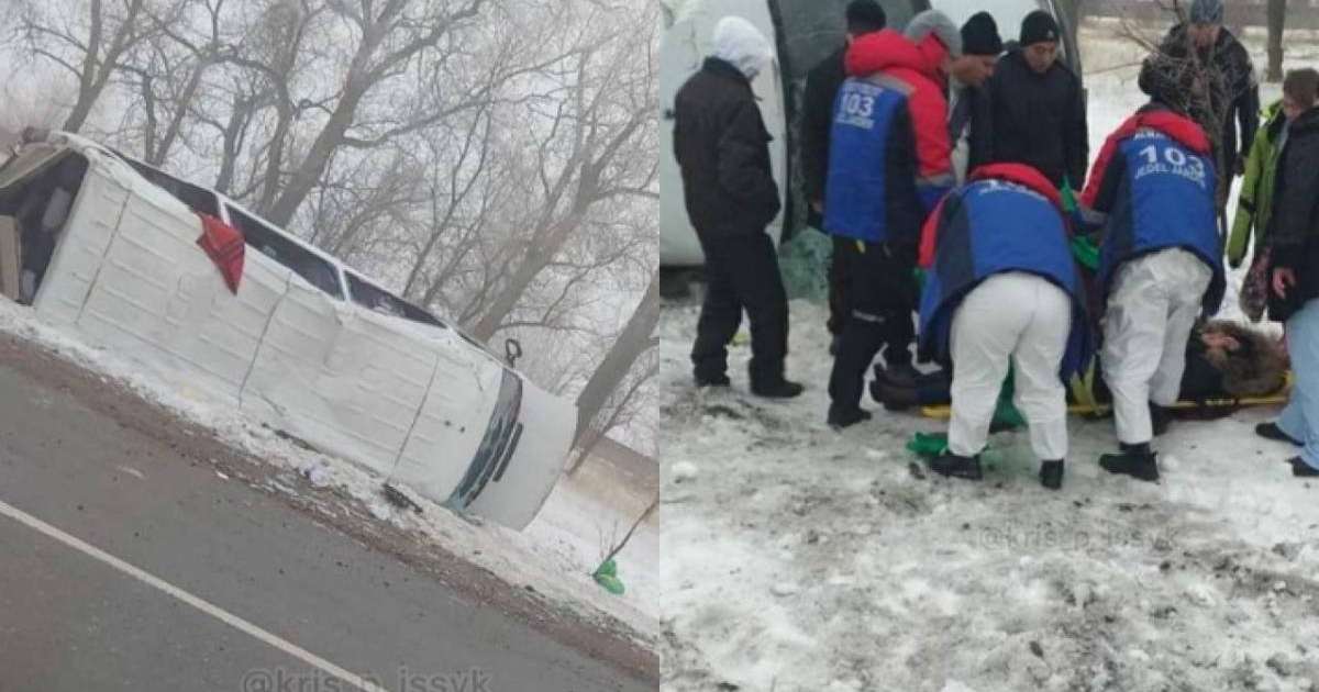Әлеуметтік желілерде Есік қаласы перзентхана қызметкерлері отыған шағын автобустың жол жиегінде аударылып жатқан суреттері мен видеолары тарап жатыр.