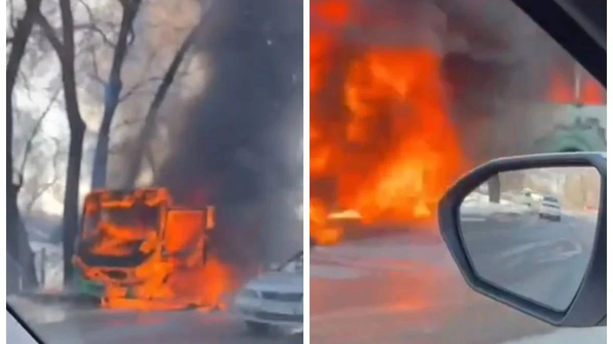 Желіде №124 автобустың өртеніп кеткен видеоcы пайда болды.