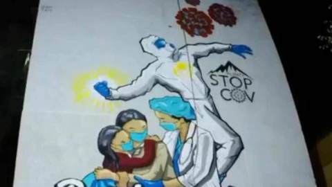 Алматыда дәрігерлердің құрметіне салынған сурет пайда болды