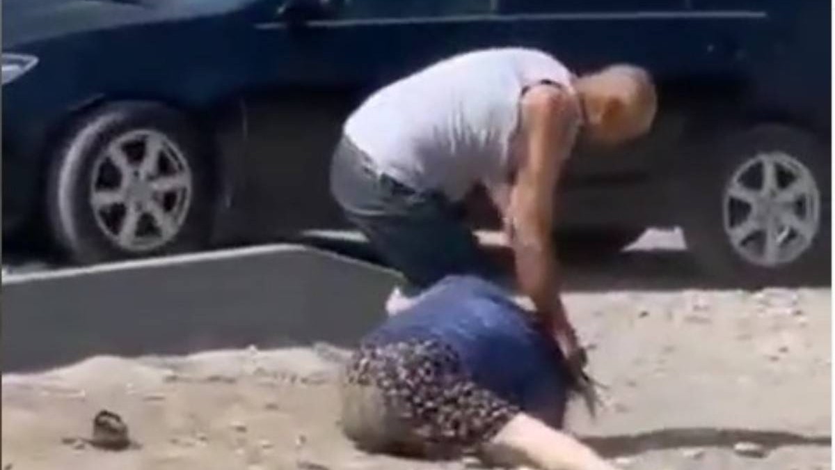 Алматыда ер адам көшенің ортасында әйелінің шашынан сүйреп, соққыға жықты.