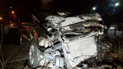 Mercedes бар жылдамдығымен Audi көлігіне соғылып, қатты соққыдан авто бордюрге бір-ақ шығып, ағашқа соғылған.