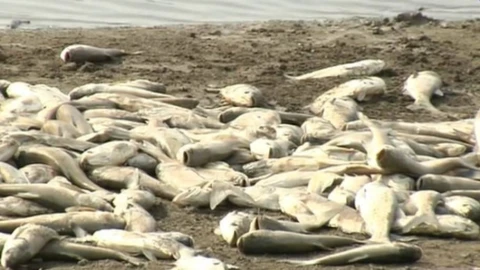 Экологтар судың түрлі үлгілерін алуда, шенеуніктер жергілікті тұрғындармен келіседі. Балық тұншығып қалса керек.