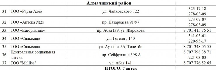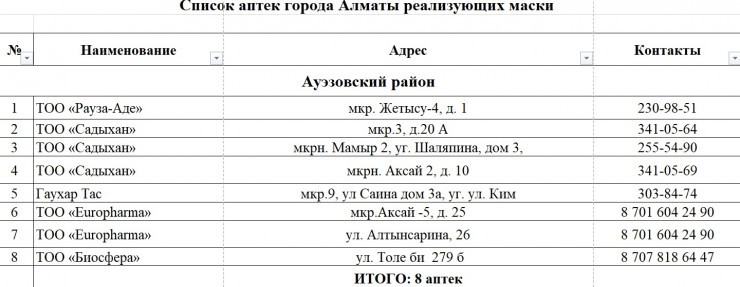 Алматыда маска жеткізілген дәріханалардың тізімі жарияланды