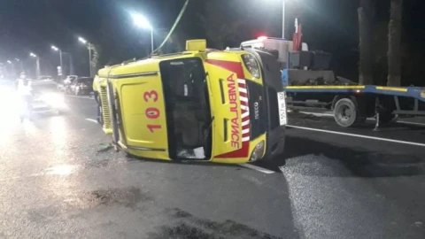 Жаппай жол апаты салдарынан жедел жәрдем көлігі аударылып кетті