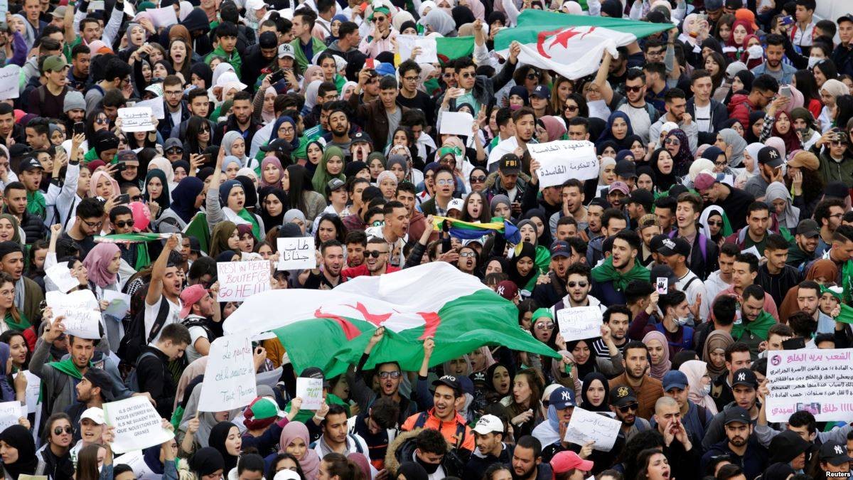 Жұма, 8 наурызда Алжирде ондаған мың адам көшеге қайта шығып, президент Әбделәзиз Бутефликаның алдағы президент сайлауына қатыспауын талап еткен. Шеру бейбіт өткен. Ел астанасы Алжир қаласында метро жабылып, кейбір пойыздар жүрмей қалған.