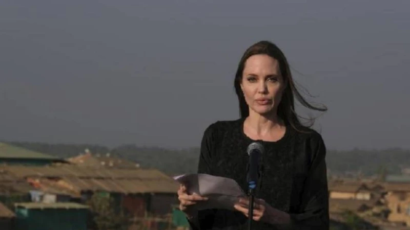 БҰҰ Босқындар істері жөніндегі жоғарғы комиссарының елшісі ретінде Анджелина Джоли Текнаф әуежайынан тура рохинджа мұсылмандары тұратын босқындар лагеріне бет алды. Олар — 2017 жылдың тамызындағы қақтығыстар кезінде Мьянмадан қашып шыққандар.