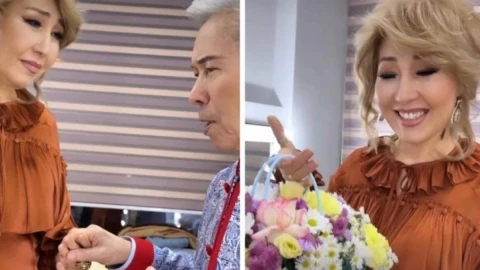 Мұндай сыйлықты күтпеген әнші көз жасына ерік берді.