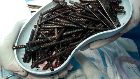 "Іш қуысын тексеріп, рентгенография және компьютерлік томография жасады. Науқастың айтуы бойынша, 2019 жылдың қараша айында ол металл заттарды - бұрандаларды жұтып жіберген. Шамамен 90 дана. Желтоқсанның басында тағы 30-ын. Шұғыл операция жасалды", - деді Көкшетаудағы көпбейінді облыстық аурухананың хирургия бөлімінің меңгерушісі Бауыржан Ахметов.