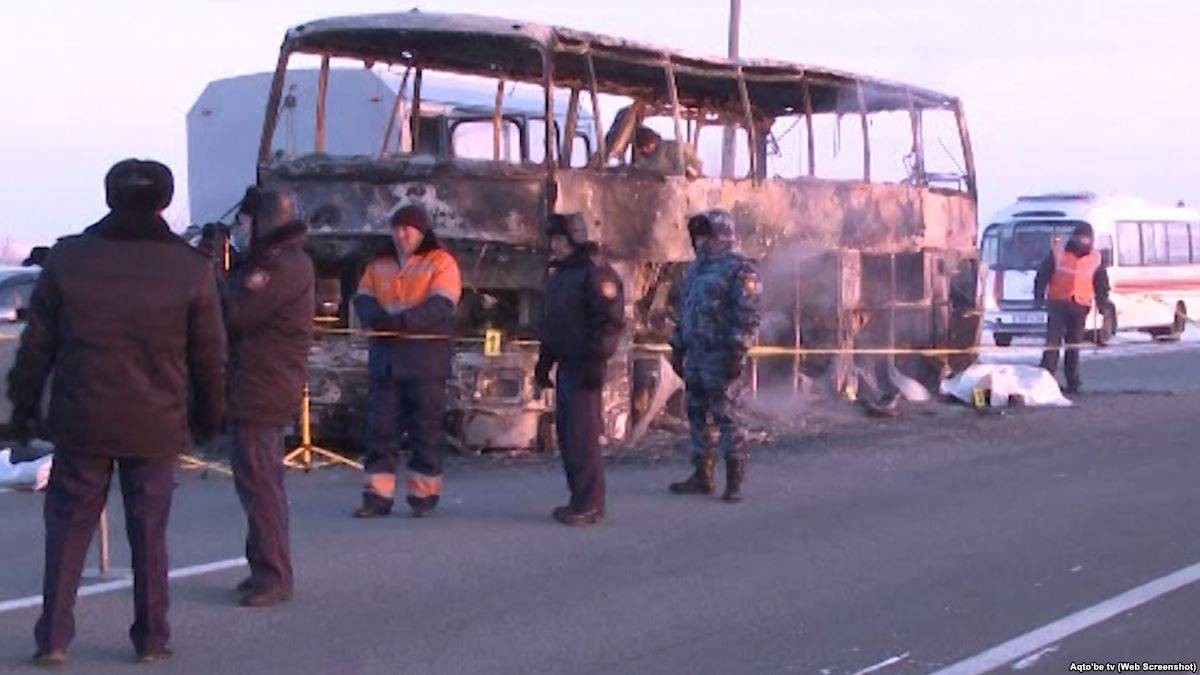 Биыл 18 қаңтарда Ақтөбе облысының Ырғыз ауданы Қалыбай ауылынан 10 километр қашықта Шымкент - Самара жолында жолаушылар автобусы өртенген. Билік орындарының хабарлауынша, автобуста барлығы 57 адам болған, олардың 52-сі қазаға ұшыраған. Құрбан болғандардың барлығы – Өзбекстан азаматтары. Екі жолаушы мен үш жүргізуші аман қалған.