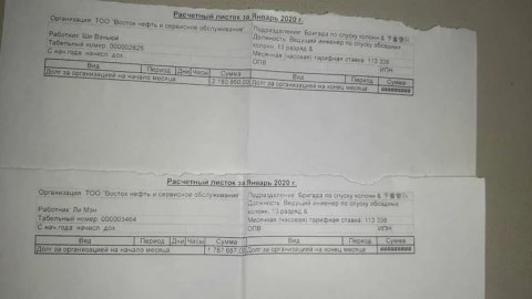 "Әлеуметтік желіде таралған түбіртекте Ли Мэн және Ши Вэ Нью азаматтарына бір айға төленген ақшалары ғана емес, олардың осы уақытқа дейін ала алмай қалған жалақы мөлшері көрсетілген. Бұл жағдайға қытайлық жұмыскерлердің қазақстандық банктерде есепшотының ашылмауы себеп болған. Аталған қызметкерлер вахтада жұмыс істейді, сондықтан олар өздерімен бірге қомақты сома алып жүруден бас тартып, есепшіге қалдырып отырған. Келісімшарт орнатылған кезден бастап олар өз жалақыларын толығымен алмаған. Бұл жерде қызметкерлердің 12 айлық табыс мөлшері көрсетілген. Олардың бір айлық жалақысы 190-200 мың теңгені құрайды", -деп жауап қатыпты ұйым басшылығы.