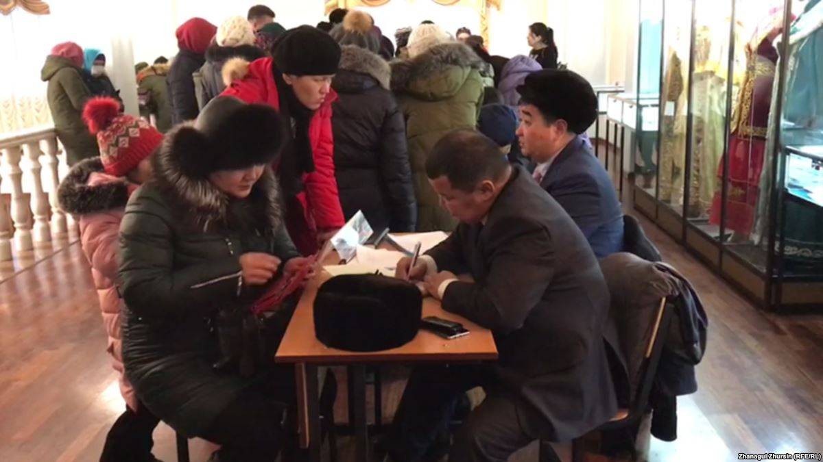 Дүйсенбі күні Ақтөбедегі Таxауи Аxтанов атындағы драма театрына Азаттық тілшісі барған ол жерде қабылдау кезегінде тұрған жүздеген адамды көрді. Арасында шалғай ауылдардан келген әйелдер де бар.