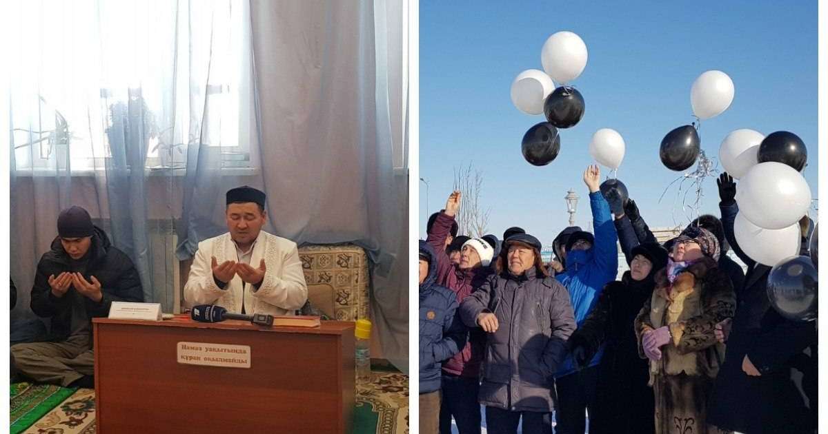 Күннің аяздығына қарамай жиналған белсенділер аспанға шар ұшырды. Кейін мешітке барып, періштелердің әруағына құран бағыштады.
