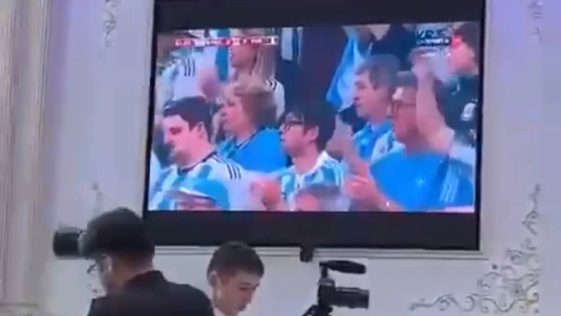 Әлеуметтік желіде Әлем Чемпионынатының кубогына таласқан Франция мен Аргентина арасындағы футбол ойыны тойда көрсетілген видео тарады. Бейнежазбадан үлкен кісілердің тілек айтып, ақ батасын жаудырып жатқанын, ал LED-экраннан футбол көрсетіліп жатқанын аңғаруға болады.