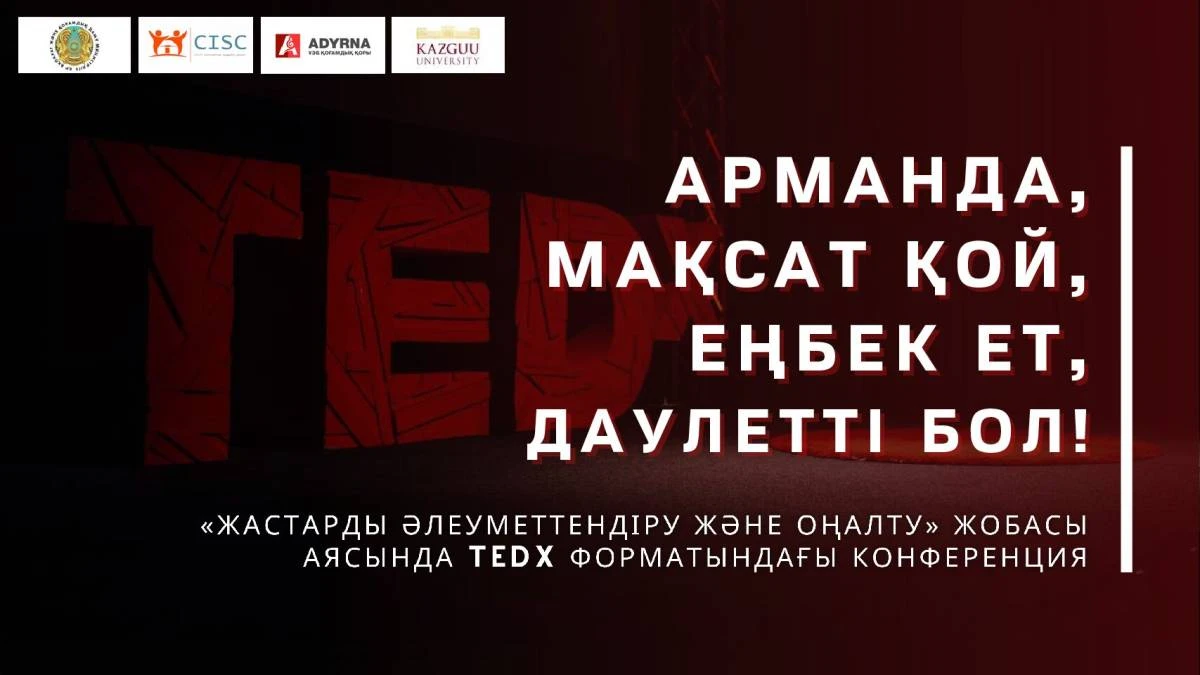 ҚР Ақпарат және қоғамдық даму министрлігі мен Азаматтық бастамаларды қолау орталығының қолдауымен «Адырна» ҰЭБ» ҚҚ «Жастарды әлеуметтендіру және оңалту» жобасы аясында NEET санатындағы жастарды еліміздің әлеуметтік-экономикалық өміріне тарту мәселелері бойынша 2022 жылдың 27 сәуір күні М.С. Нәрікбаев атындағы КАЗГЮУ университетінде сағат 14:00-14:30 аралығында «Арманда, мақсат қой, еңбек ет, дәулетті бол!» тақырыбында ТЕD-x форматындағы конференция мен сағат 14:30-15:00 аралығында «NEET жастары: құлықсыз жастарды қалай ынталандырамыз?» тақырыбында талқылау алаңы өткізеді.