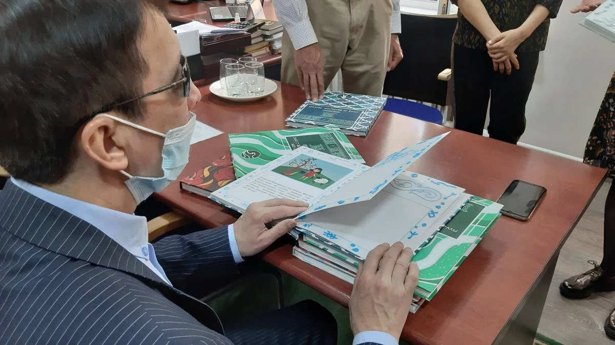 Әлеуметтік инновациялар және технологиялар орталығының жетекшісі Нурия Литвинова кітапты өз қолымен тарту етіп, заманауи кітап басу ісінің озық тәжірибесімен бөлісті.