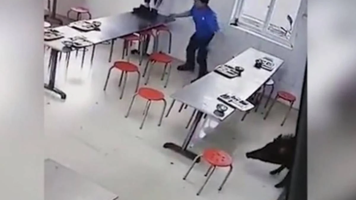 Қытайда жабайы қабан зауыттың асханасына кіріп кеткен. Асханада отырған адамдар тамақтарын тастап, жан-жаққа тұра қашқан. Қабан бірнеше орындықты құлатып, түскен асты жей бастаған.