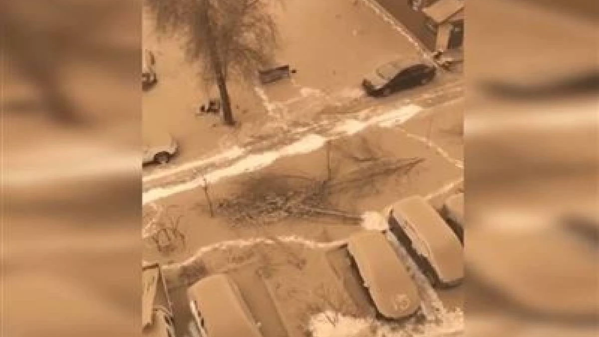 Куәгерлер ерекше қарды видеоға түсіріп, әлеуметтік желілерде жариялап жатыр. Роликтерден автокөліктер тұраққа қойылған жолдарды, әуежайды ашық қоңыр түсті қар жауып қалғаны көрінеді.