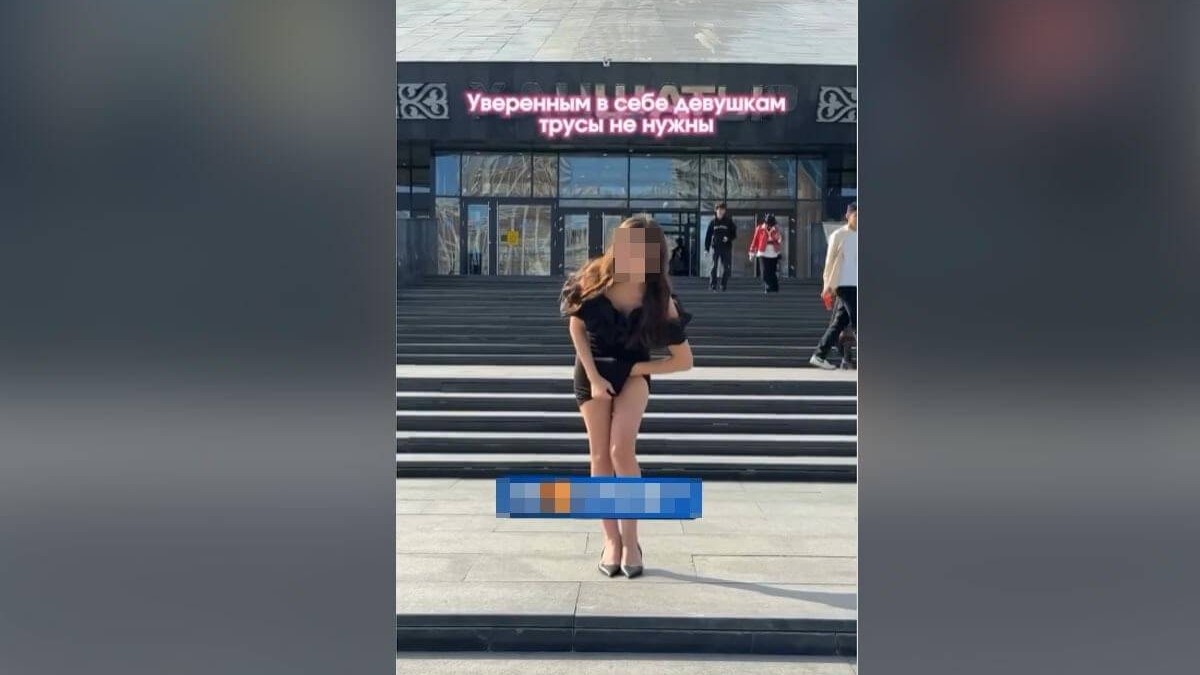 Астанада «Хан Шатыр» сауда ойын-сауық орталығының алдында жас қыз іш киімін шешіп, видеоға түскен, деп хабарлайды Kznews.kz тілшісі.