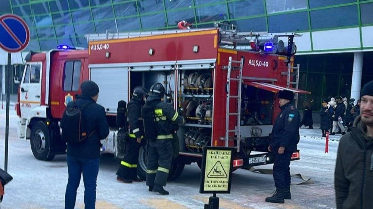 Сыртқы белгісі бойынша №1 және №2 терминалдар арасындағы галереяда көк түтін көтеріліп, эвакуация жүргізілді.