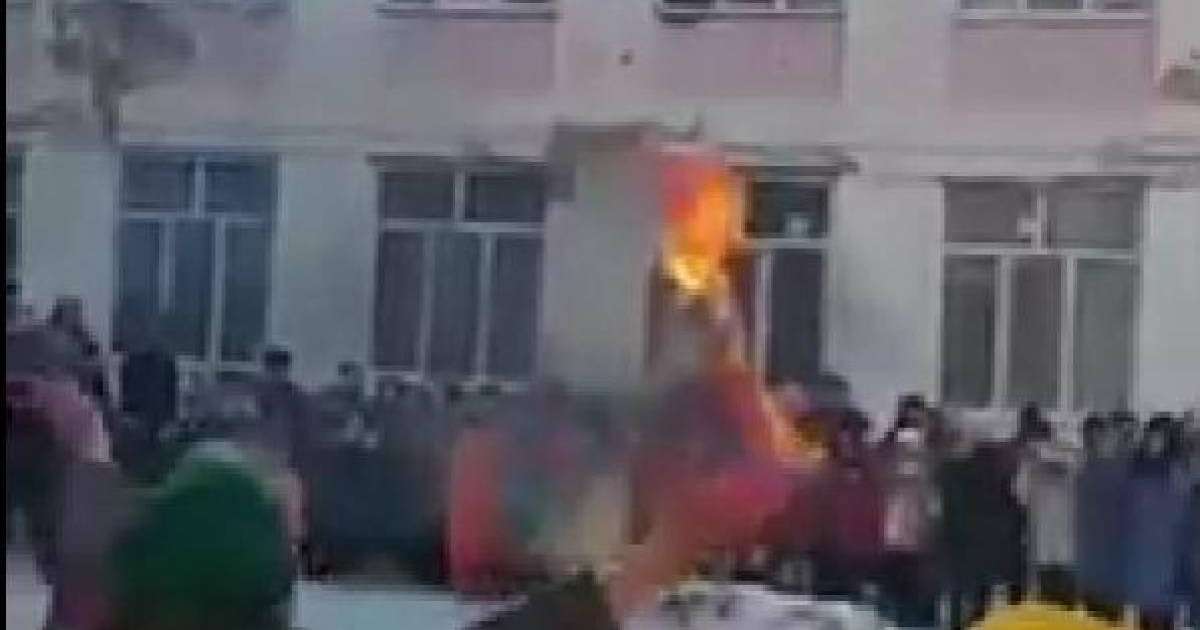 Әлеуметтік желіде мектеп ауласында алау жағылғаны түсірілген видео тарады.