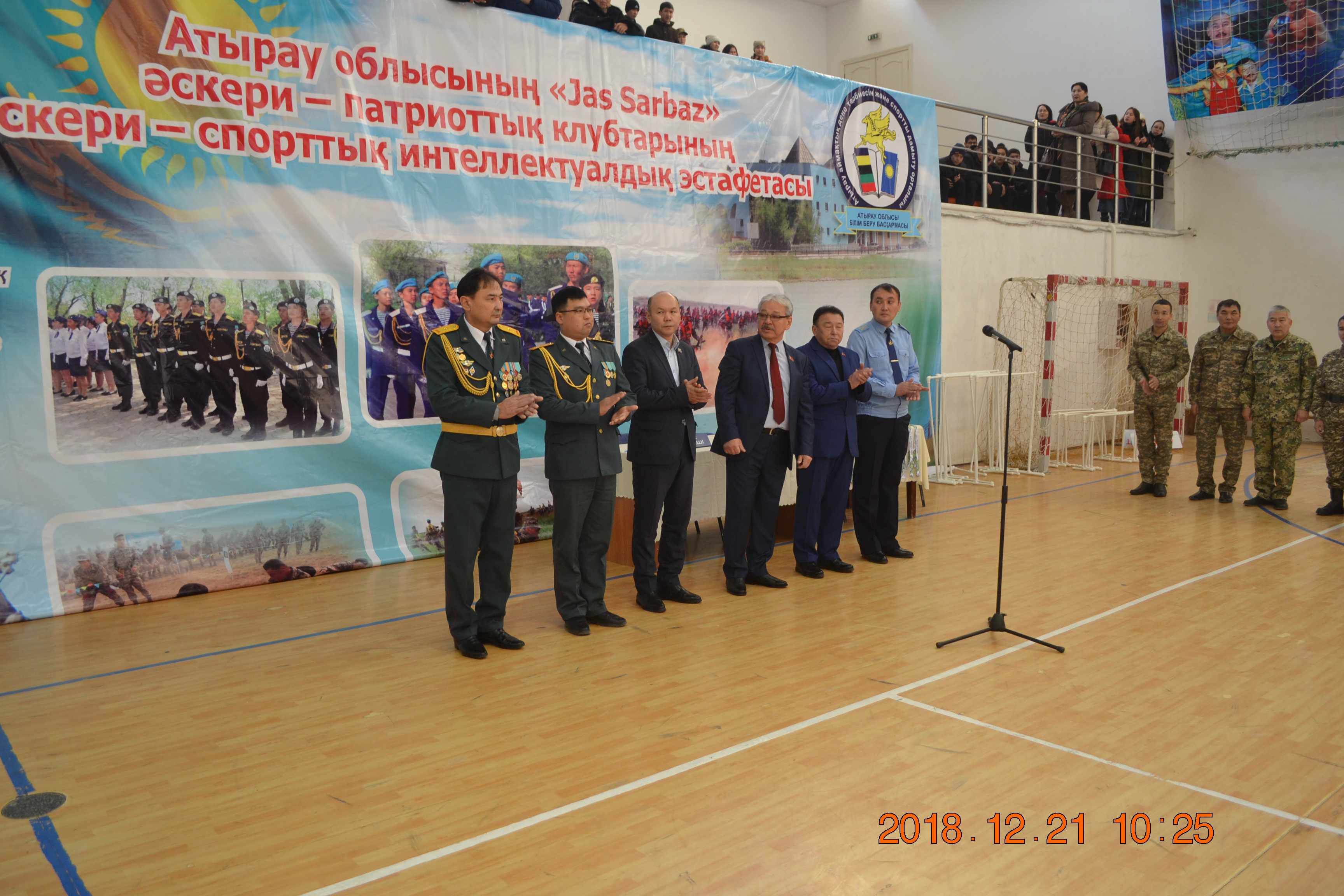 Алғаш рет желтоқсанның 21 мен 22 аралығында Атыраудағы «Мұнайшы» стадионында әскери-патриоттық клубтар арасында (10-11 сынып оқушылары мен 1-2 курс колледж студенттері) «Jas Sarbaz» атты әскери-спорттық интеллектуалды эстафета өтті деп хабарлайды Qamshy.kz ақпарат агенттігі.