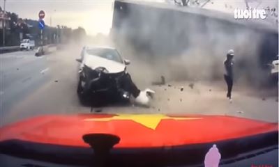 Вьетнамның солтүстік шығысындағы Куангнинь провинциясында болған апат көліктердің бірінің регистраторына түсіп қалған.
