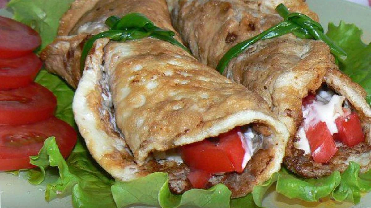 - Жайылған ет тұрған үлдірді алып, етті жұмыртқа қоспасына саламыз.