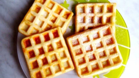 Алдыменен жылы сүтке ашытқы мен аздап қант ерітіп, жылы жерге қойып қою керек. Ашытқы көтерілген кезде жұмыртқа сарыларын қосып (жұмыртқа ағын бөлек ыдысқа бөліп қою керек), қалған қант пен еріген сары май қосып араластырамыз. Ұн мен ванилин қосып тағы араластырамыз. Енді бөлек тұрған жұмыртқа ақтарына аздап қана тұз қосып жақсылап миксерлеу керек. Апақ мақта тәрізді болып үлкейеді. Енді осыны негізгі қоспаға қосып, қасықпен жаймен араластырып қою керек. Вафли қамыры дайын. Осыны енді бір сағатқа дейін қойып қойсаңыз, қамыр одан сайын көтеріліп, вафли үлпілдеген болып піседі. Дайын қамырды вафли пісіретін ыдысқа екі ас қасықтан қойып пісіру ғана қалды. Негізі көбіректен қойсаңыз да болады, талғамыңызға қарай. Вафли құрамында май мөлшері жеткілікті болған соң, ыдысты майлап тұрудың қажеті жоқ.