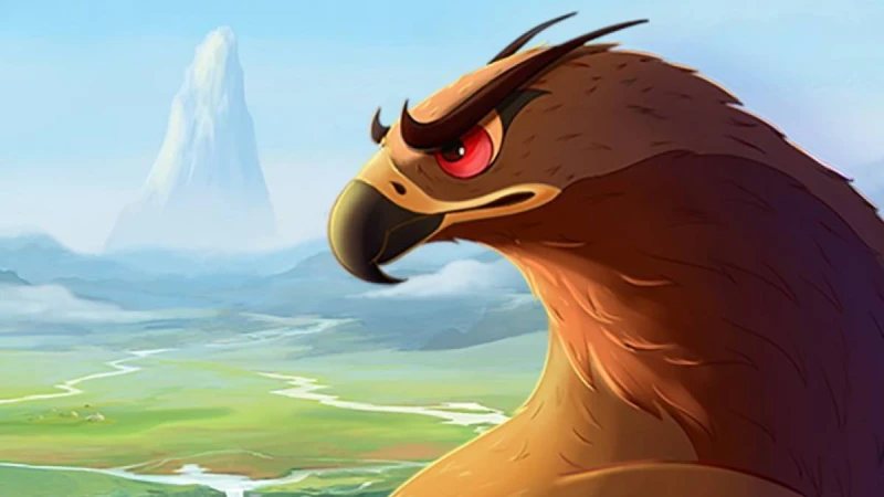 Қыран бүркіт қанат жайып тұрады.