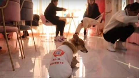 Шанхайдағы дәмханалардың бірінде корги тұқымды иттер даяшы болып жүр.