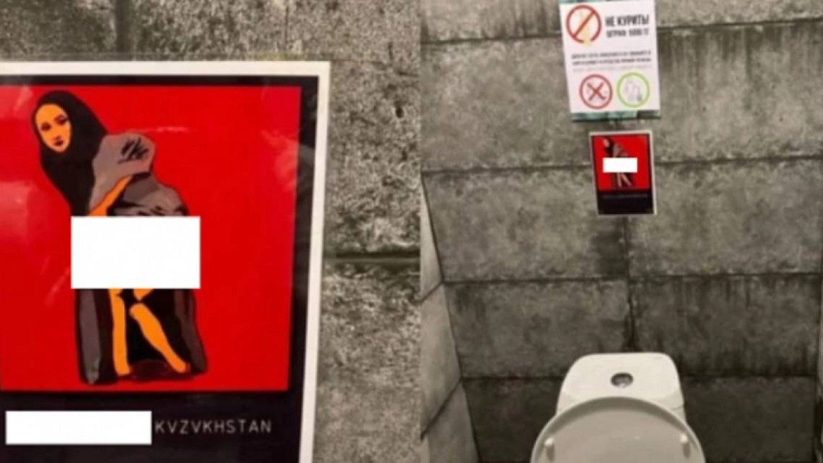 Әлеуметтік желіде дәретханадағы постердің суреті тараған. Унитаздың жоғарғы жағындағы суретте жартылай жалаңаш әйел бейнеленген, ал денесіне "Қазақстан" деп жазылған. Сонымен қатар "дәрет сындырып, "KVZVKHSTAN"-ды тап" деп жазылған.