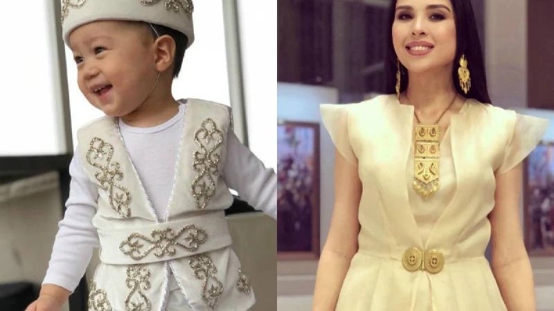 Динара бұл күні кенжесі Мәдиге ұлттық киім кигізген. Сондай-ақ, өзі де ұлттық нақышта көйлек киді.