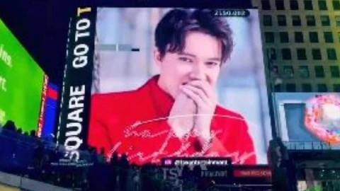 Димаш Құдайбергенді Нью-Йорктегі Таймс-скверде туған күнімен құттықтады.