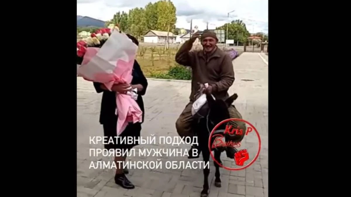 Әлеуметтік желіде әйелінің туған күнінде есекке мініп келіп, гүл сыйлаған ер адамның видеосы тарады, - деп жазады Kznews.kz Nege.kz сайтына сілтеме жасап.
