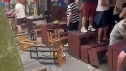 Жанкүйерлер қолына түскен заттарды лақтырып, оның ішінде жиһаз, ыдыс-аяқ және тіпті үлкен экран қолданыста болды.