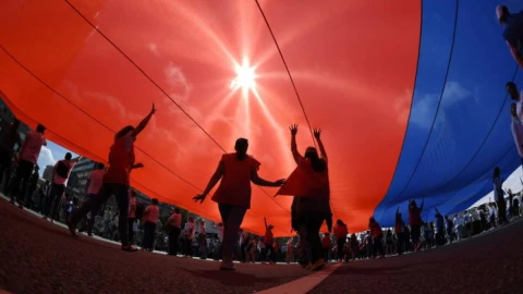 НҰР-СҰЛТАН, 24 тамыз — Sputnik. Ресейдің Мемлекеттік туы күніне орай өткен "Флаг-рекордсмен" флешмобы РФ-ның муниципалитеттерінің тулары бейнеленген ең ірі мата ретінде Ресейдің рекордтар кітабына енді.
