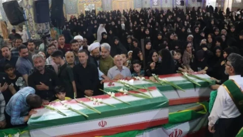 Жаппай жерлеу рәсімі Тегеранның орталығындағы Энкелаб алаңында өтті. Мемлекеттік ту жамылған табыттарды мыңдаған адам қоршап, қара киінген жұрт қолдарына марқұмдардың суреттерін ұстап, Израильге қарсы ұрандар айтты. Жерленгендердің қатарында Иран қарулы күштері штабының бұрынғы бастығы, генерал Мохаммад Багери де болды.
